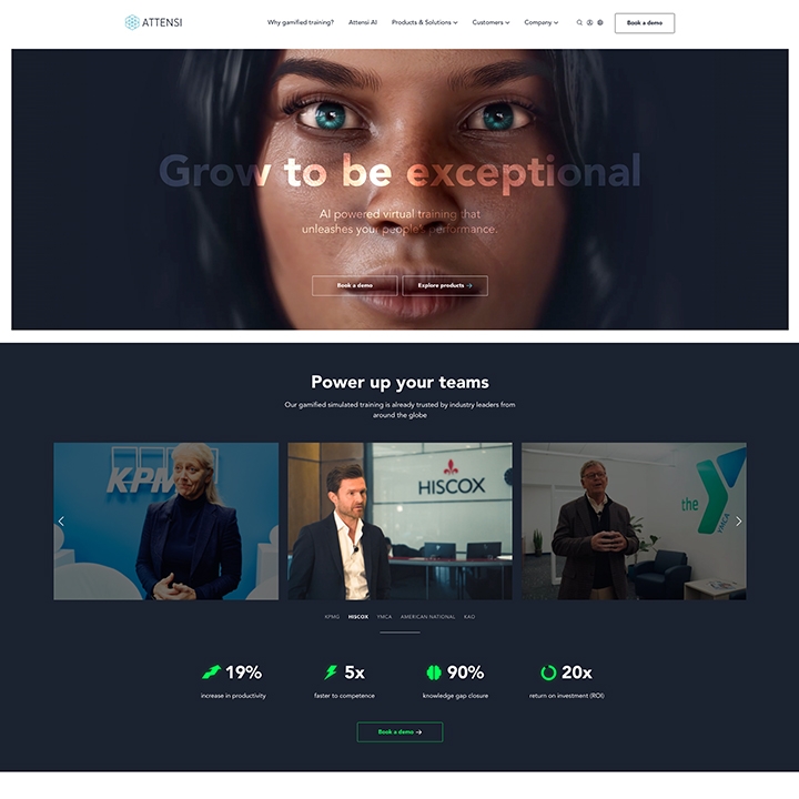 Attensi er et svært ambisiøst Norsk selskap som har hatt en stor internasjonal vekst. Dagens nettside ble lansert i 2023 og er bygget på Wordpress. Løsningen inneholder en rekke innholdsmoduler som gjør det mulig for redaktørene å presentere selskapet produkter, tjenester, kundecaser osv på en fleksibel måte. Nettsiden er lansert på 4 ulike språk for tilgjengelighet for brukere og synlighet i søkemotorene på de viktigste markedene og har fokus på konvertering av besøkende til leads.