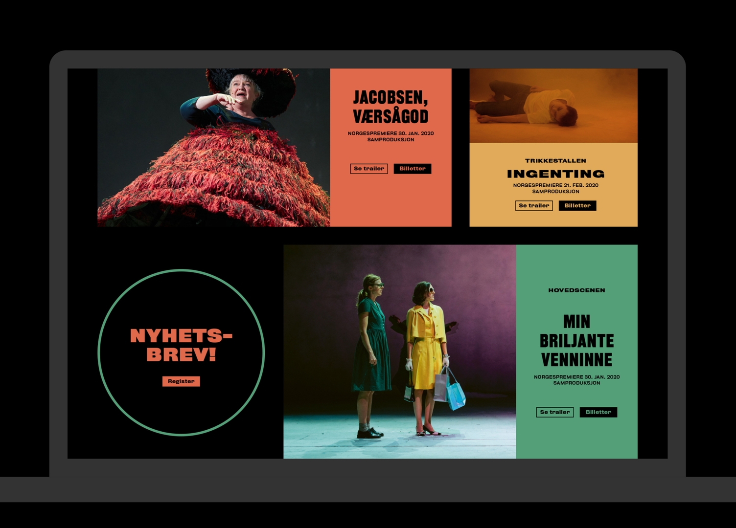 Når Oslo Nye Teater fikk ny visuell profil fra Tank Design fikk vi gleden av å bistå med utviklingen av den nye nettsiden. Et spennende prosjekt som inneholder et godt utvalg innholdsblokker i et lekent design, enkel og brukervennlig struktur og oppsett og en Wordpress-løsning integrert med Ticketmaster for opplisting av spilleplanen til de ulike forestillingene.